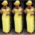 Best Review Yellow feather dress ball evening dress banquet party formal occasion dress custom