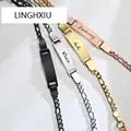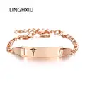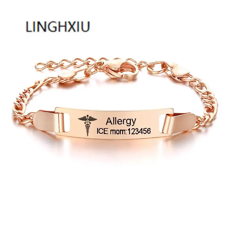 Best Lingxiu Medical Alert ID Bracelet For Baby Children Engraved Name Rose Gold Stainless Steel Figaro Chain Link Adjustable and You will save 0% or US $17.39 today